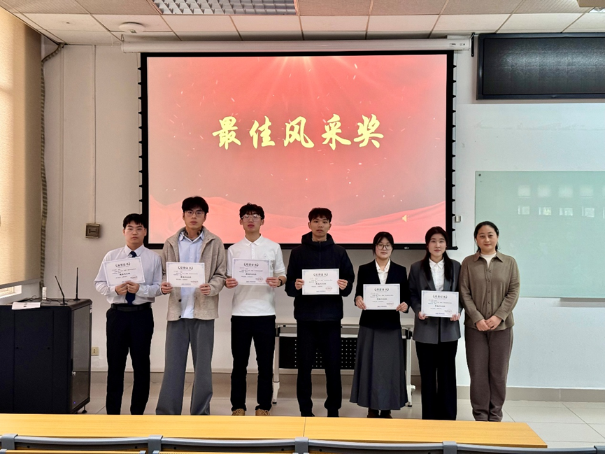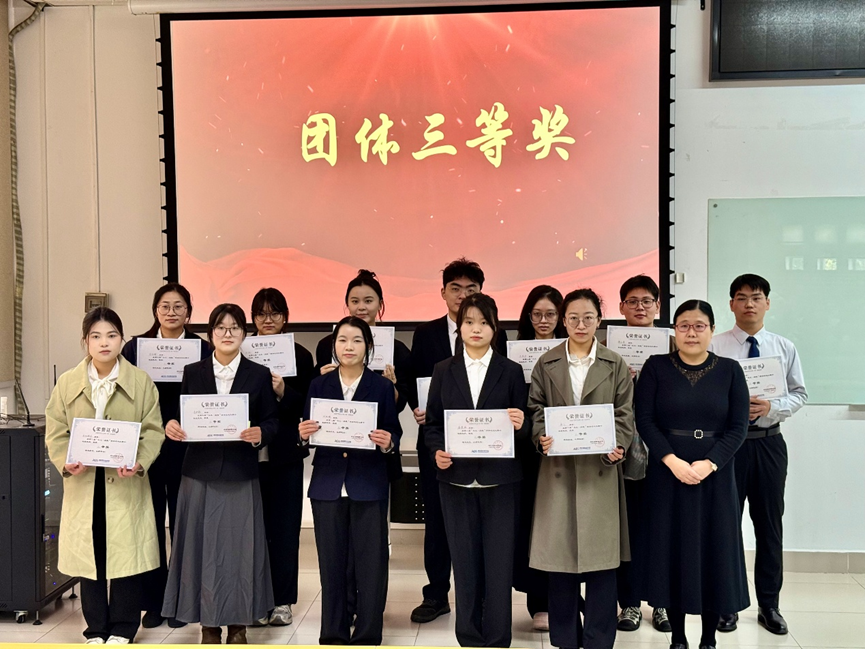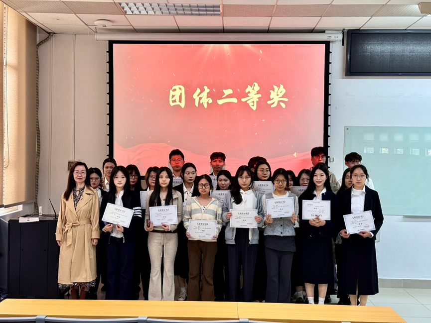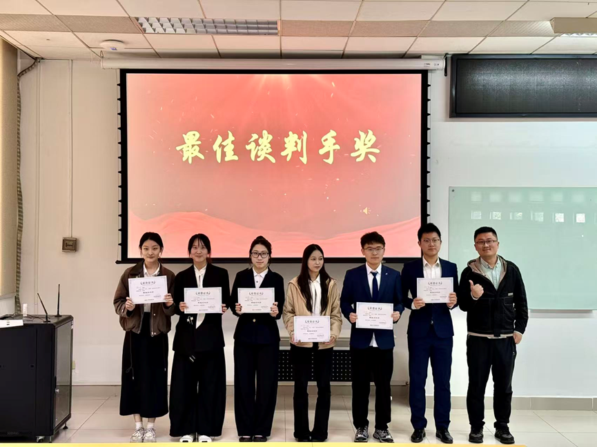 经过激烈角逐,大赛最终评选出一等奖2组、二等奖4组、三等奖6组。经评委合议,还产生了“最佳谈判手”6名与“最佳风采奖”6名。在随后举行的颁奖仪式上,太阳成集团tyc33455cc官网副经理仲鑫为一等奖获奖队伍颁发了奖状;陈蕾、赵春燕为二等奖队伍颁奖;丁秀飞、王升泉、毕蕾分别为三等奖队伍、“最佳谈判手”及“最佳风采奖”获得者颁奖,并与同学们合影留念