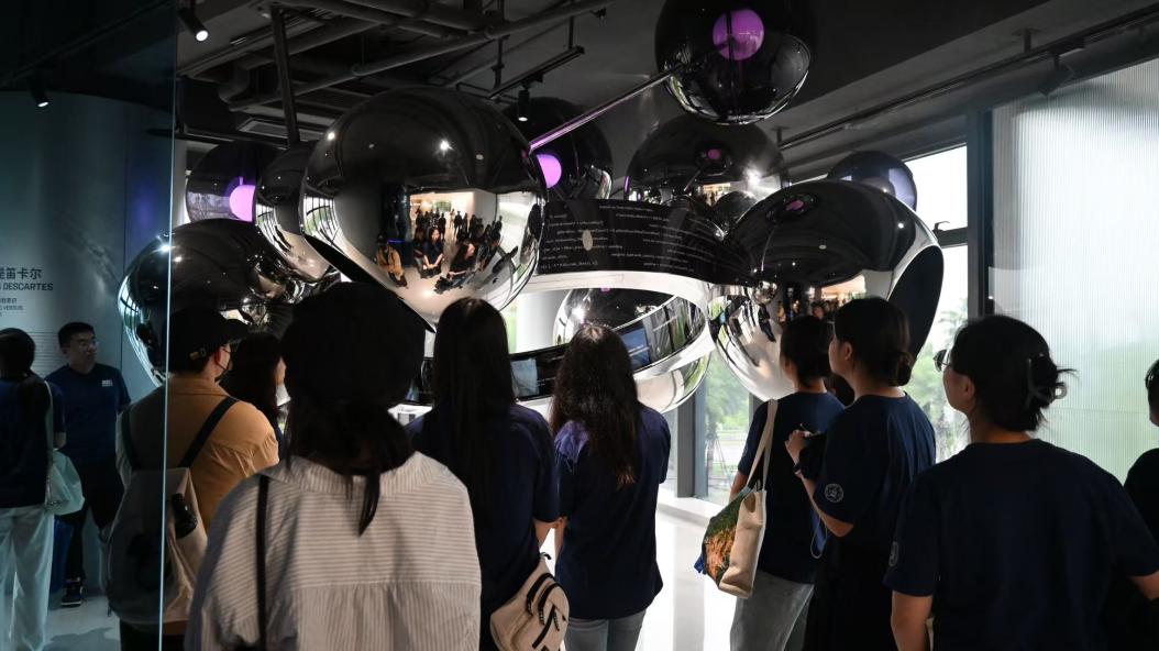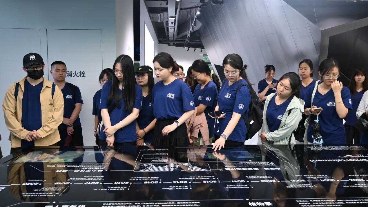 随后,师生们跟随工作人员的脚步,深入探访金山软件园的各个标志性区域。从承载着企业历史记忆的大堂,到展示前沿创新成果的展厅,再到洋溢着人文关怀的员工生活区域,每一处都蕴含着金山独特的文化底蕴与发展脉络。尤其在“明日之城”场景展览中,以高新科技、未来畅想、AI文化等为主题的丰富展品与交互式设施,让师生们沉浸式领略了金山一路走来的发展历程、独具魅力的企业文化,以及面向未来的宏伟愿景。